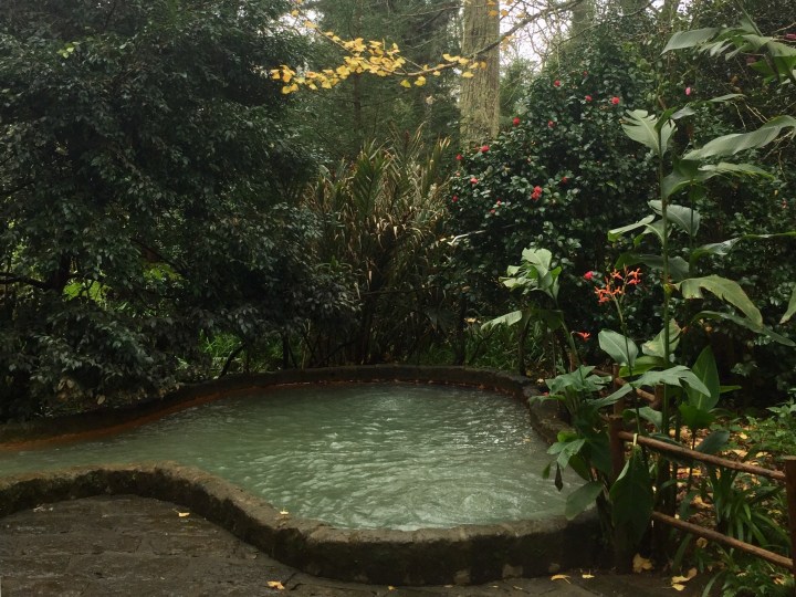 Po spacerze kąpiel. Ja wybrałam kąpielisko w parku koło hotelu Terra Nostra. Zasadniczo to XVIII-wieczna rezydencja kupca i dyplomaty z Bostonu, która została przebudowana przez kolejnych właścicieli w wiekach XIX i XX. Na miejscu drewnianego dworu stanął elegancki pawilon, a z 2 ha parku zrobiło się 12, 5 ha terenu przy hotelu SPA. Na terenie można zażywać kąpieli w większym basenie z wyspą (woda w kolorze sugestywnej ochry – dużo żelaza) lub w mniejszych termalnych jacuzzi. Temperatura wody między 35-40 stopni Celsjusza, wygodne kabiny do przebrania, śpiewające w parku ptaki… Wyspy Szczęśliwe bez dwóch zdań.