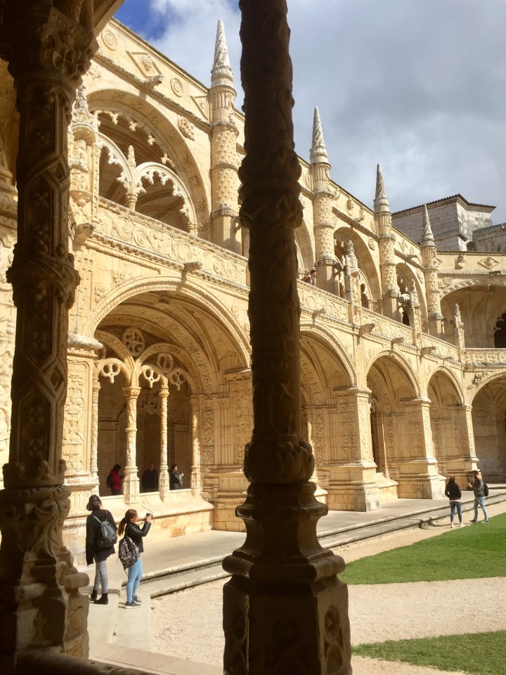 W imponującym kompleksie wzniesionym na początku XVI wieku, żeby uczcić portugalskie „odkrycia geograficzne” i panującą ówcześnie dynastię Aviz, znajdują się dziś różne muzea. My zdecydowałyśmy się na degustację klasztornej architektury, czyli dziedziniec i kościół Najświętszej Marii Panny, gdzie w XIX wieku złożono hm… doczesne szczątki Vasco da Gama. Otwarte do zwiedzania pomieszczenia są właściwie puste. Główną atrakcją jest ażurowa dekoracja samych krużganków – bardzo charakterystyczny styl nazywany manuelińskim na cześć króla fundatora Manuela I Wilkiego lub Szczęśliwego.