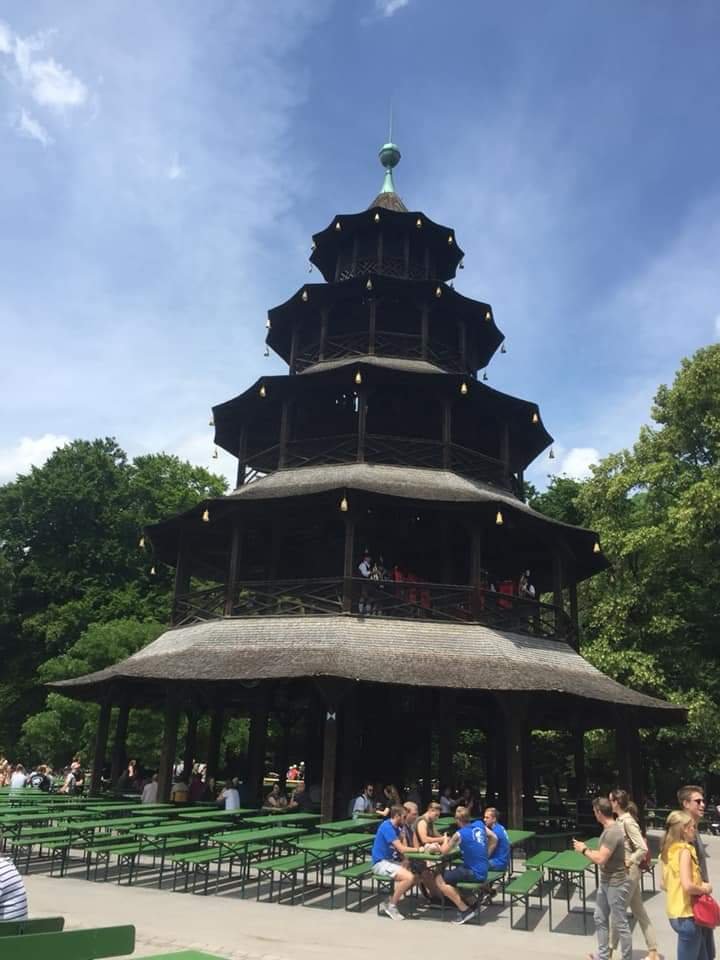 Po Baronie cyganskim przyszedł Verdi. Deski drewnianej pagody wibrowały od Va pensiero, goście ogródkowi wtórowali z przekonaniem (chyba w niemieckiej wersji językowej) a ja udałam się po kolejne piwo. Życie w Monachium jest piękne a doznania intensywne i egzotyczne. Więc stan idealnej trzeźwości nie wydawał się wskazany. Orkiestra grająca w pagodzie pośrodku Parku Angielskiego prezentowała się w bawarskich spodenkach, białych koszulkach i kapelusikach z piórami – estetyczne bawarskie full immersion.