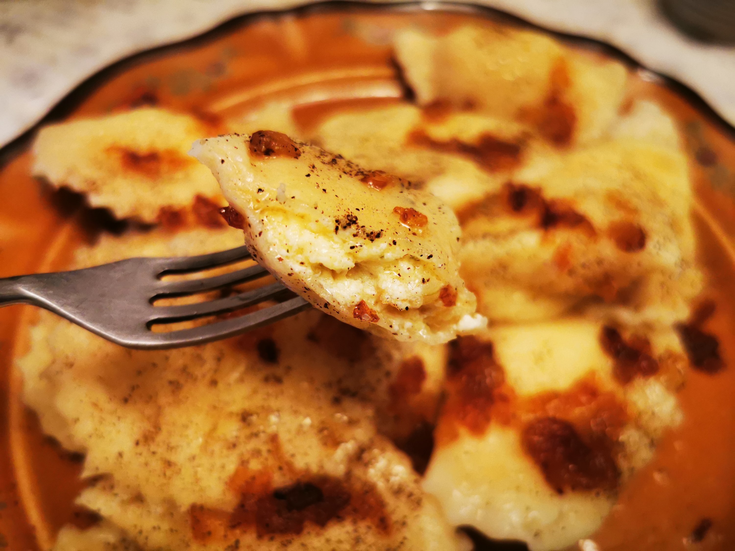 Babciny ruski modelowy, znaczna ilość cebulki zasmażonej na masełku oraz pieprzu – to moje ulubione dodatki