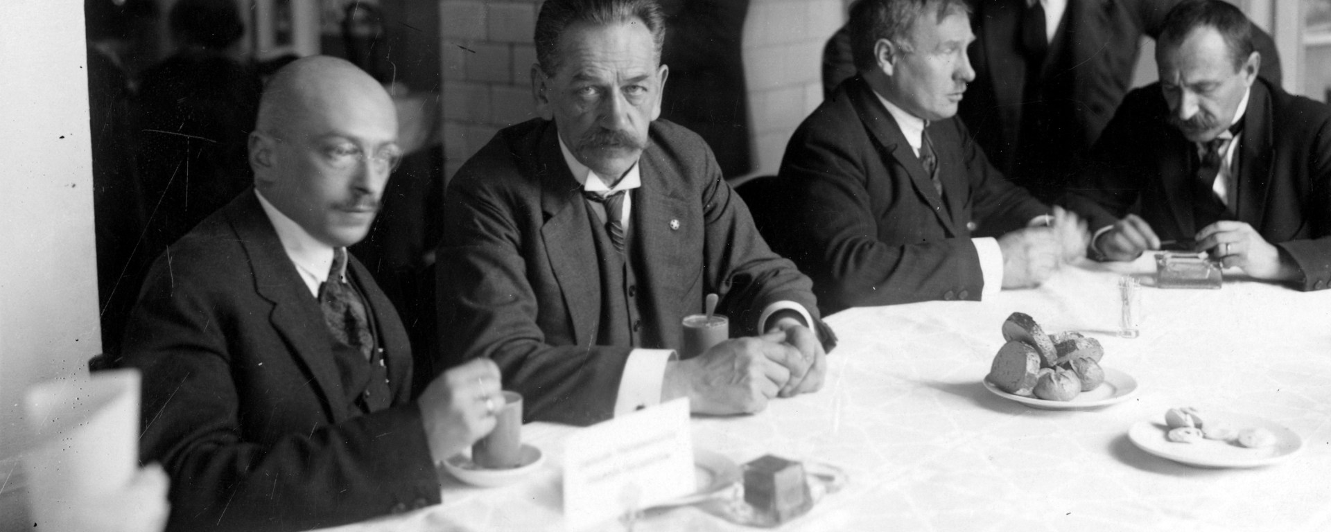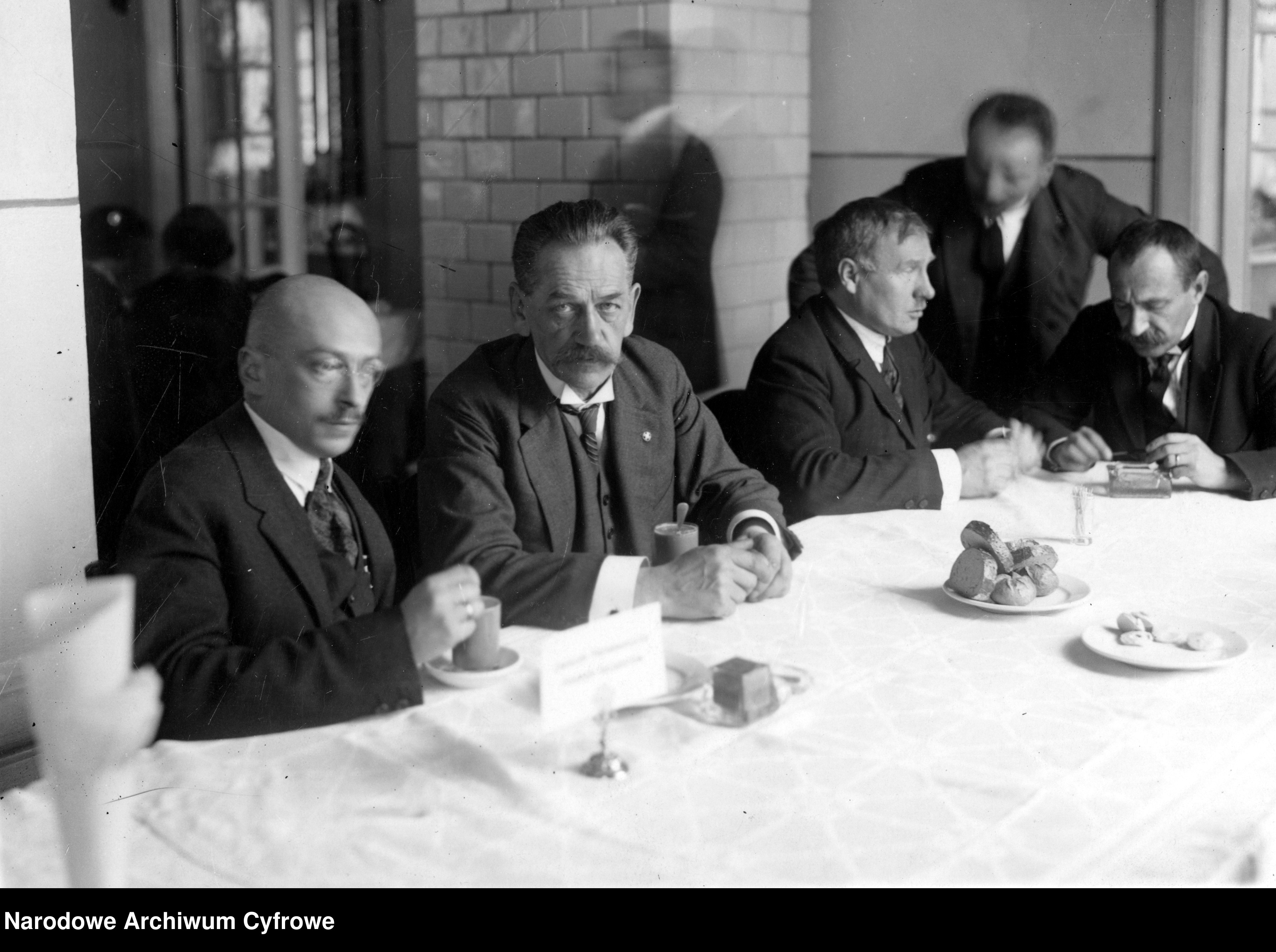 Na zdjęciu: Członkowie klubu parlamentarnego PPS w kuluarach sejmowych. Widoczni od lewej: Adam Pragier, Jędrzej Moraczewski i z prawej Rajmund Jaworowski, NAC