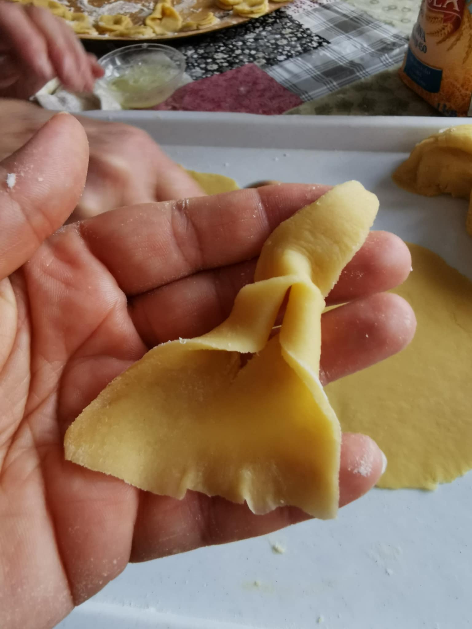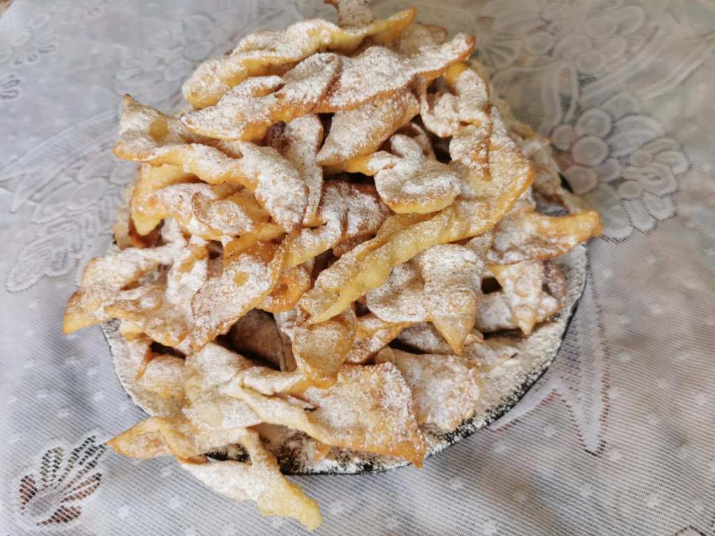 Dodać cukru pudru i odrobinę zapachu migdałowego do żółtek. Zagnieść ciasto jak na makaron. Dobrze wyrobić, aby się nie kleiło do rak ani do stolnicy. Wałkować jak na makron, ale trochę grubiej. Kroić paski na kawałki długie na 10 centymetrów, przewijać przez środek, przeciągając kawałki przez środek. Smażyć z dwóch stron, posypać cukrem pudrem z wanilią. – Maria Zarzeczańska